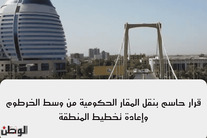 أصدرت اللجنة العليا لتهيئة البيئة لعودة المواطنين إلى ولاية الخرطوم قرارًا بنقل جميع المقار الحكومية من منطقة وسط الخرطوم، الممتدة من السكة الحديد حتى النيل، ومن المقرن حتى القيادة العامة، تمهيدًا لإخضاع المنطقة لمراجعات تخطيطية شاملة وإعادة تنظيمها وفق رؤية عمرانية جديدة.
