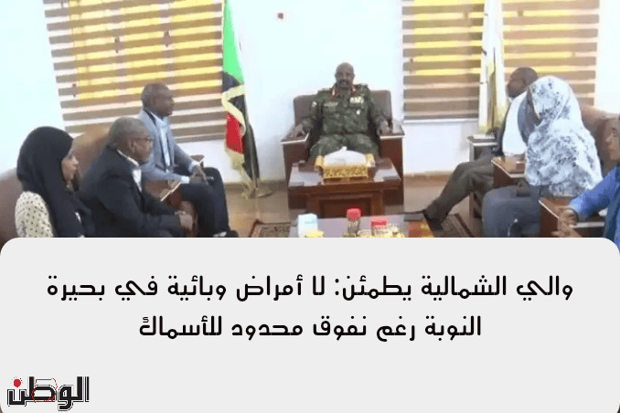 طمأن والي الولاية الشمالية، الفريق ركن عبد الرحمن عبد الحميد إبراهيم، المواطنين بشأن الأوضاع البيئية في بحيرة النوبة، مؤكداً خلو المنطقة من أي أمراض وبائية أو مخاطر صحية، وذلك عقب تقارير عن نفوق كميات من الأسماك خلال الأيام الماضية.‏‏